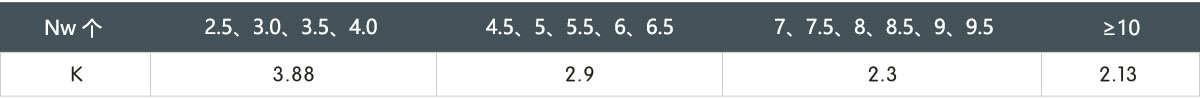 波數(shù)對(duì)應(yīng)剛度修正系數(shù)K的取值